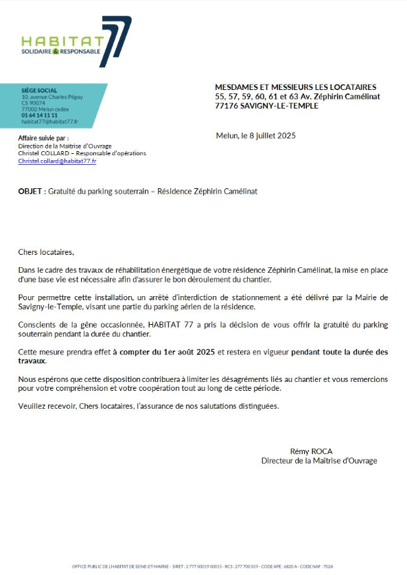 Infos liées au chantier